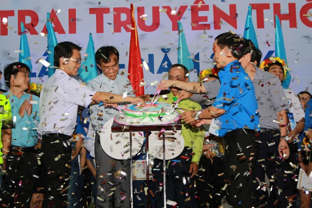 Quý đại biểu cùng cán bộ Đoàn - Hội các thời kỳ cùng lên thực hiện nghi thức chúc mừng sinh nhật Đoàn
