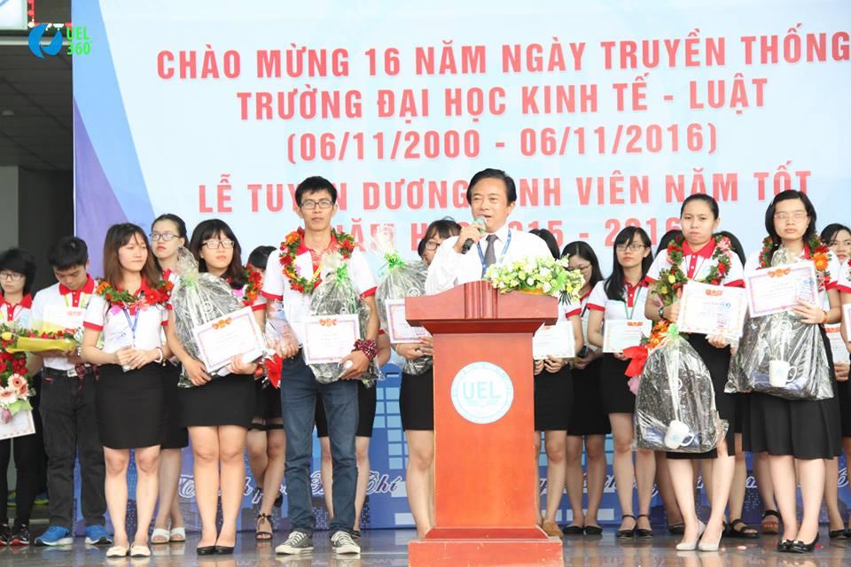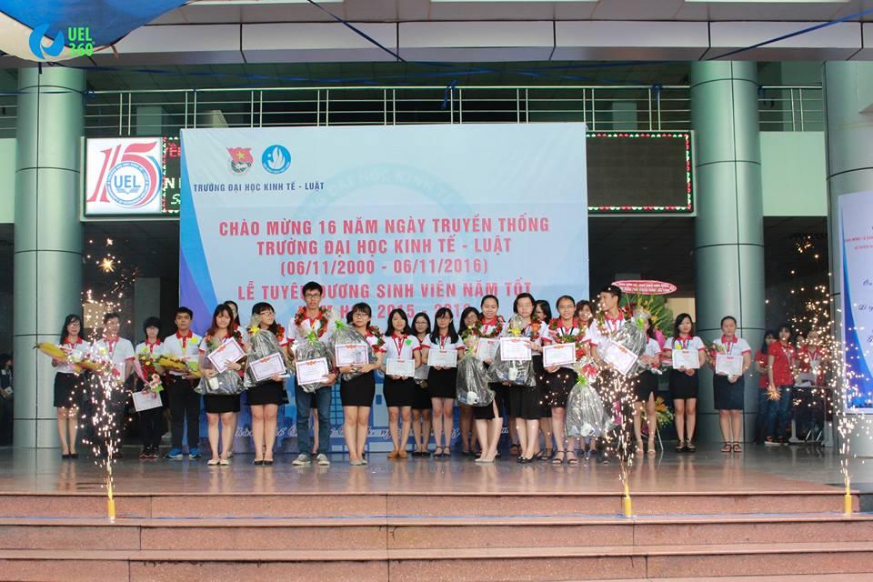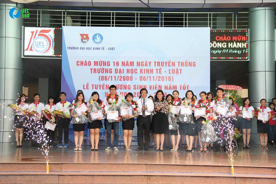 Nhân kỷ niệm 16 năm Ngày truyền thống Trường, ngày 06/11/2016 tại khu vực đại sảnh Hội Sinh viên trường ĐH Kinh tế - Luật đã tổ chức tuyên dương 86 Sinh viên 5 tốt cấp trường năm học 2015 - 2016.