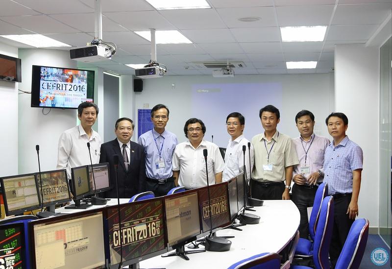 Chụp hình lưu niệm tại Phòng mô phỏng thị trường tài chính