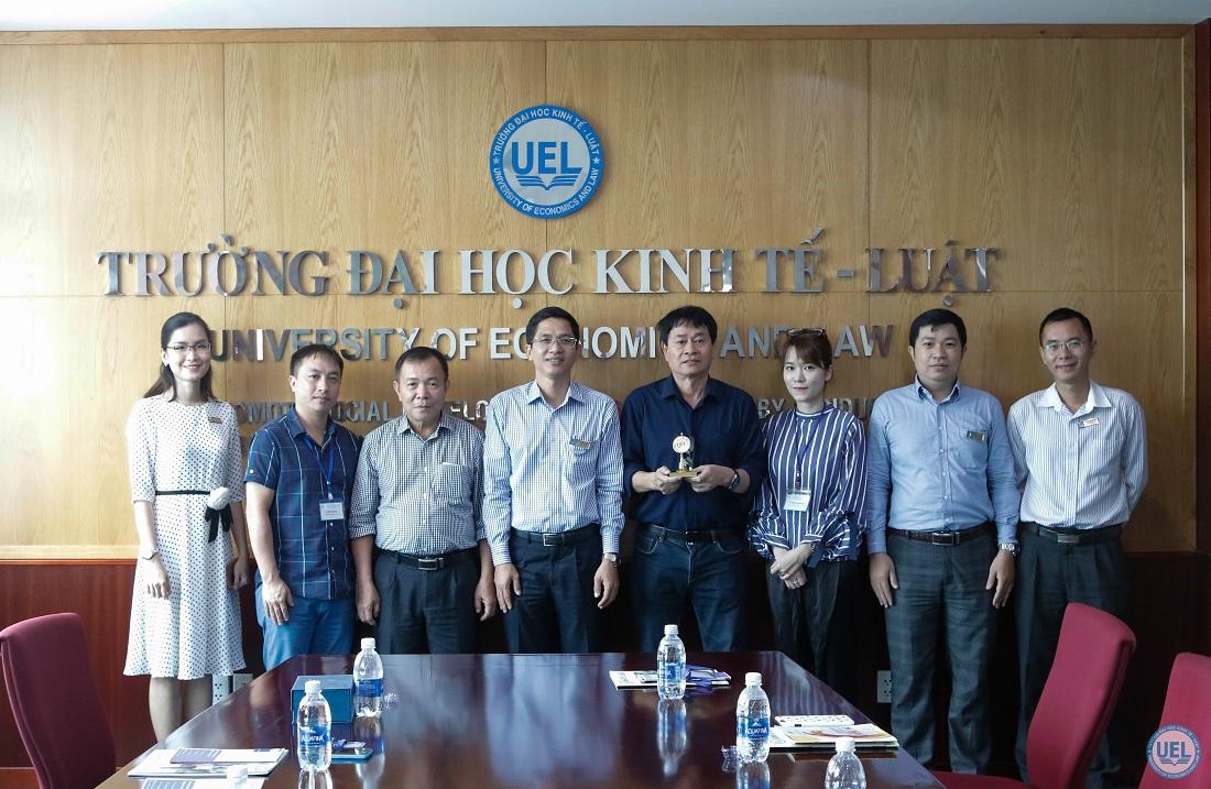 Sáng ngày 17.10.2017, đại diện Ban Giám hiệu Trường Đại học Kinh tế - Luật đã có buổi tiếp và làm việc với Đoàn công tác Trường Đại học Thăng Long, Hà Nội do ông Trương Ngọc Kim - Phó Chủ tịch Hội đồng quản trị Trường Đại học Thăng Long làm trưởng đoàn đến thăm và làm việc với Trường.