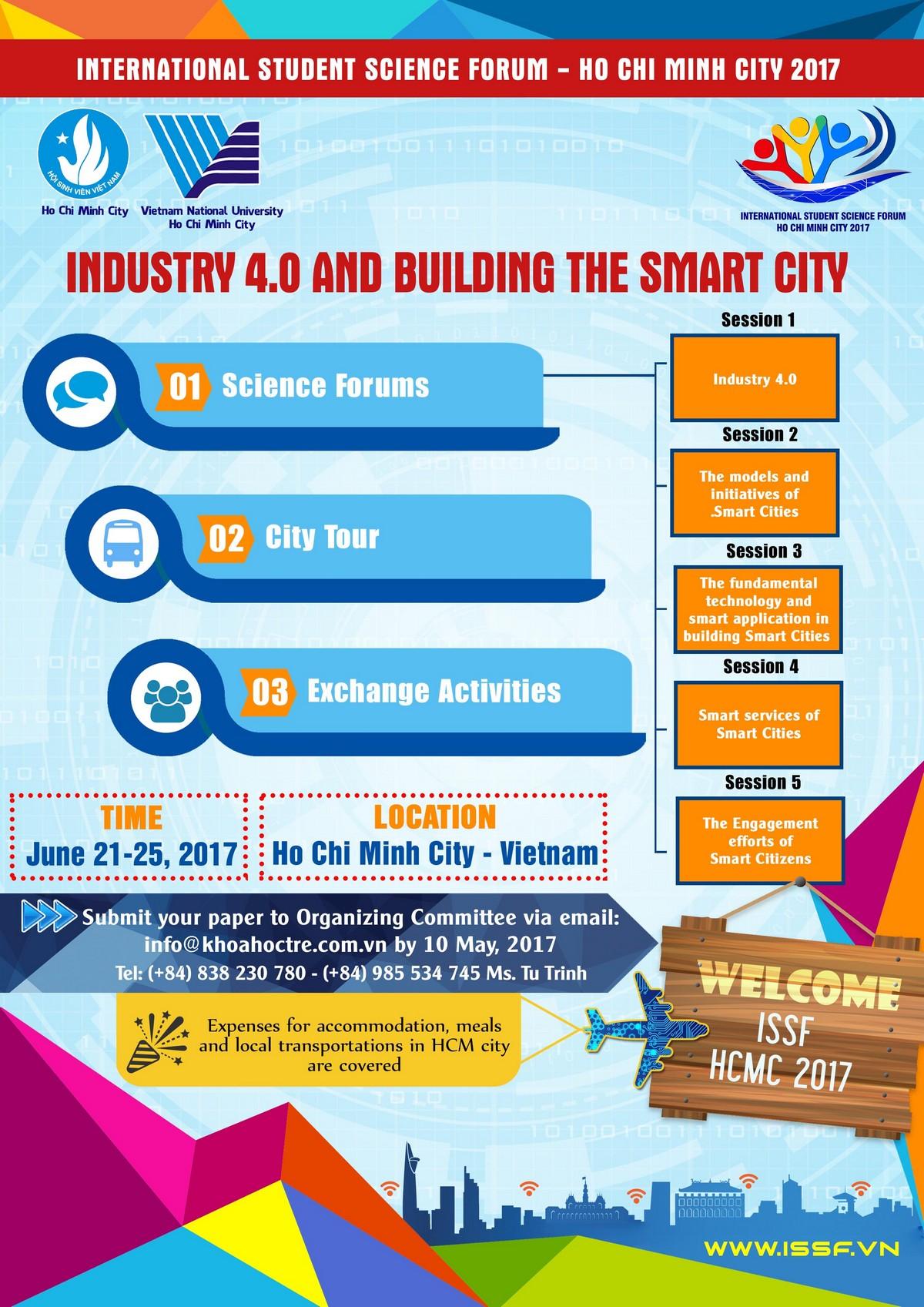 Diễn đàn khoa học sinh viên quốc tế lần thứ 2 đã chính thức trở lại. Ngay bây giờ, các bạn có thể nộp đơn đăng kí tham gia diễn đàn!! Với chủ đề "Cuộc cách mạng công nghiệp lần thứ 4 và xây dựng thành phố thông minh", ban tổ chức hi vọng có thể tìm ra giải pháp cho sự phát triển của thành phố khi bước vào cuộc cách mạng công nghiệp lần thứ 4. Đồng thời khám phá những giải pháp xây dựng thành phố thông minh khác nhau trên toàn thế giới. Tại diễn đàn năm nay, ban tổ chức hi vọng quy tụ 50 sinh viên quốc tế và 100 sinh viên Việt Nam đến từ mọi miền trên khắp cả nước.