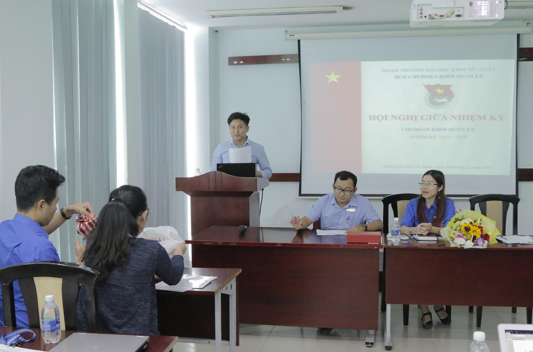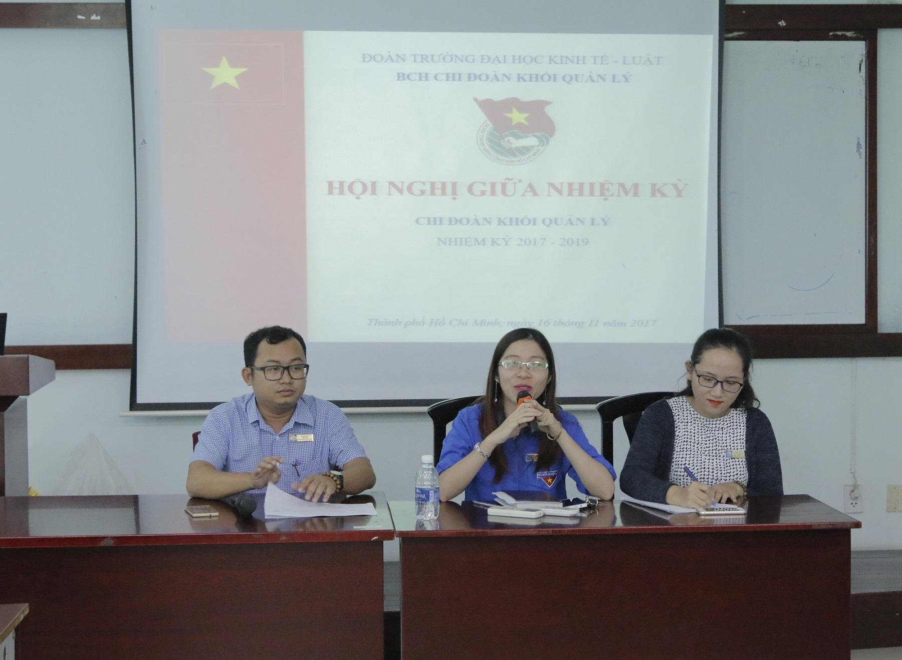 Ngày 16/11/2017 tại phòng A604, Trường Đại học Kinh tế - Luật, Chi đoàn Khối Quản lý đã tổ chức Hội nghị giữa nhiệm kỳ 2017 - 2019 với sự tham gia đông đảo của đoàn viên Chi đoàn