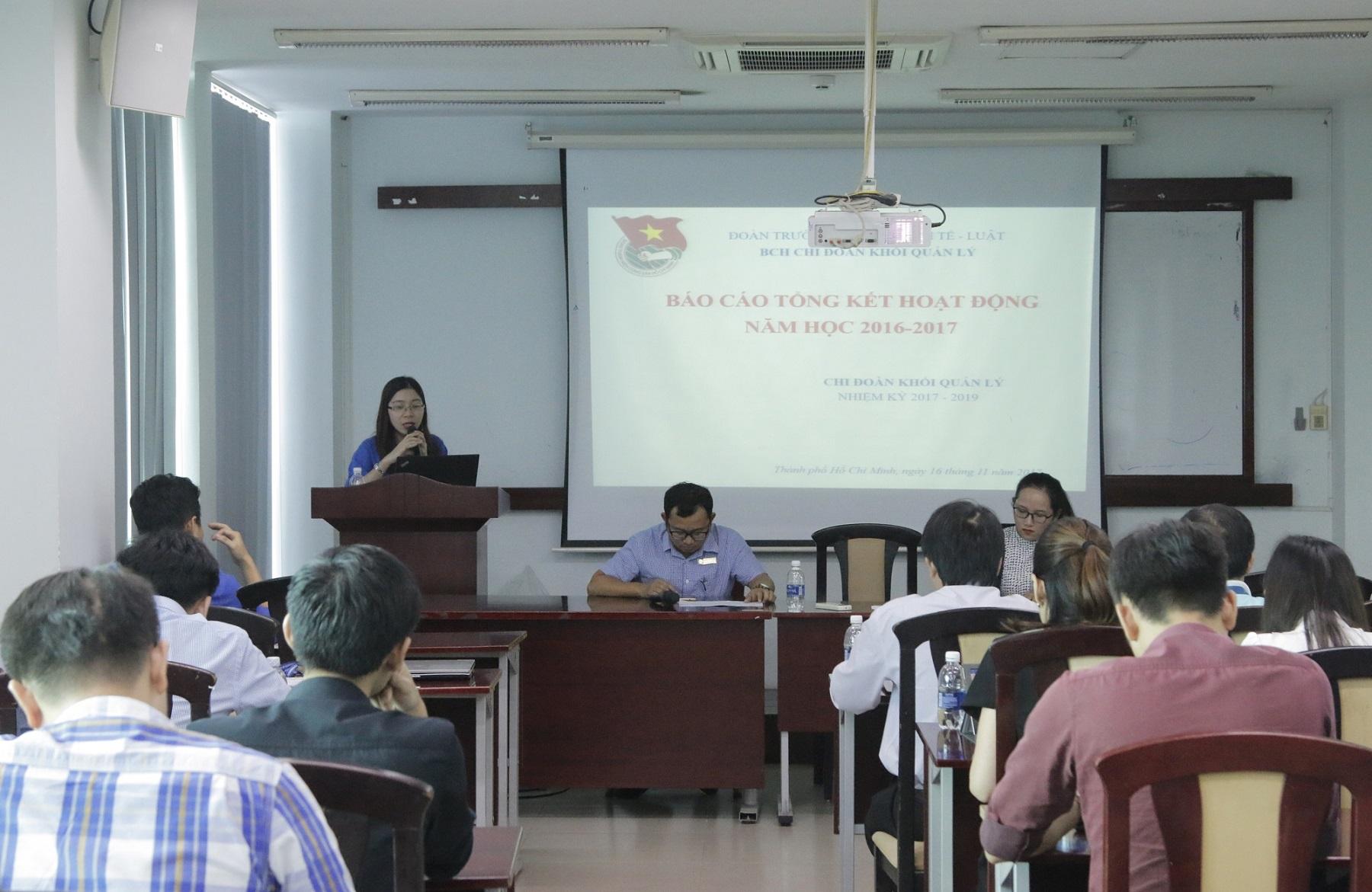 Ngày 16/11/2017 tại phòng A604, Trường Đại học Kinh tế - Luật, Chi đoàn Khối Quản lý đã tổ chức thành công Hội nghị giữa nhiệm kỳ 2017 - 2019 với sự tham gia của toàn thể đoàn viên Chi đoàn.