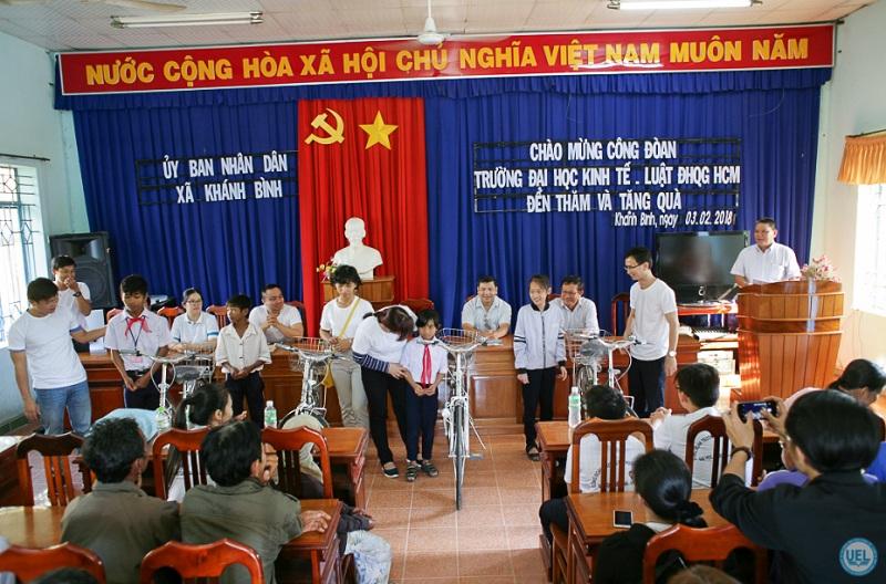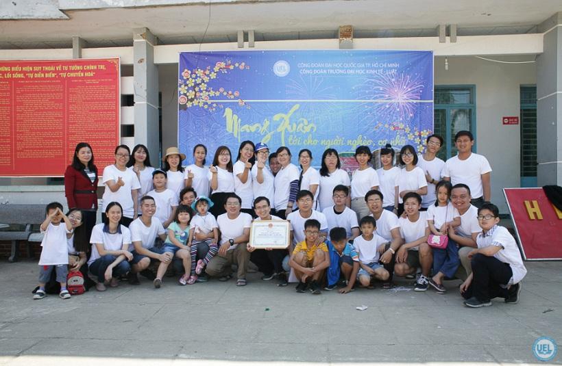 Nối tiếp truyền thống tốt đẹp ấy, năm 2018, Công đoàn Trường Đại học Kinh Tế - Luật đã phát động và tổ chức Chương trình "Mang xuân tới cho người nghèo, cơ nhỡ" tại Huyện Khánh Vĩnh, Khánh Hòa, địa phương bị ảnh hưởng nặng nề bởi cơn bão số 12 vừa qua (72 nhà sập hoàn toàn, 321 nhà bị hư hỏng rất nặng, 1.570 nhà bị hỏng nặng, hàng nghìn hecta cây trồng bị hư hỏng nặng).