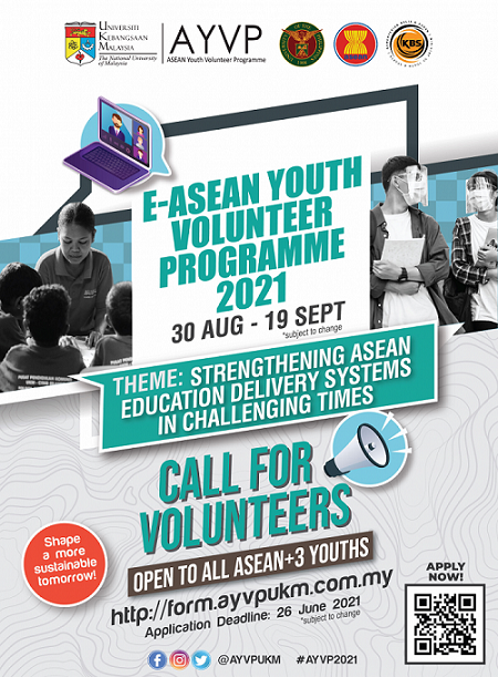 Chương trình Thanh niên tình nguyện E-ASEAN Youth Volunteer Programme 2021 (AYVP) tin rằng thanh niên có cả trí tuệ và trái tim để phát triển như những nhà lãnh đạo tương lai của ASEAN, với mục tiêu chính là thúc đẩy hoạt động tình nguyện của thanh niên bằng cách nâng cao hiểu biết đa văn hóa và phát triển ý thức về bản sắc khu vực, đồng thời tạo điều kiện cho thanh niên đóng góp cho xã hội, kinh tế và môi trường sự phát triển của Cộng đồng ASEAN.