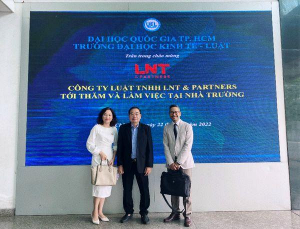 Sáng ngày 22/02/2022, Công ty Luật LNT & Partners đã có buổi thăm và làm việc với đại diện Ban Giám hiệu Trường Đại học Kinh tế - Luật, ĐHQG-HCM (UEL) về sáng kiến hợp tác toàn diện giữa hai bên trong các hoạt động đào tạo, học bổng, hội thảo, sự kiện để góp phần nâng cao chất lượng đầu ra của các sinh viên khối ngành Luật của nhà trường.