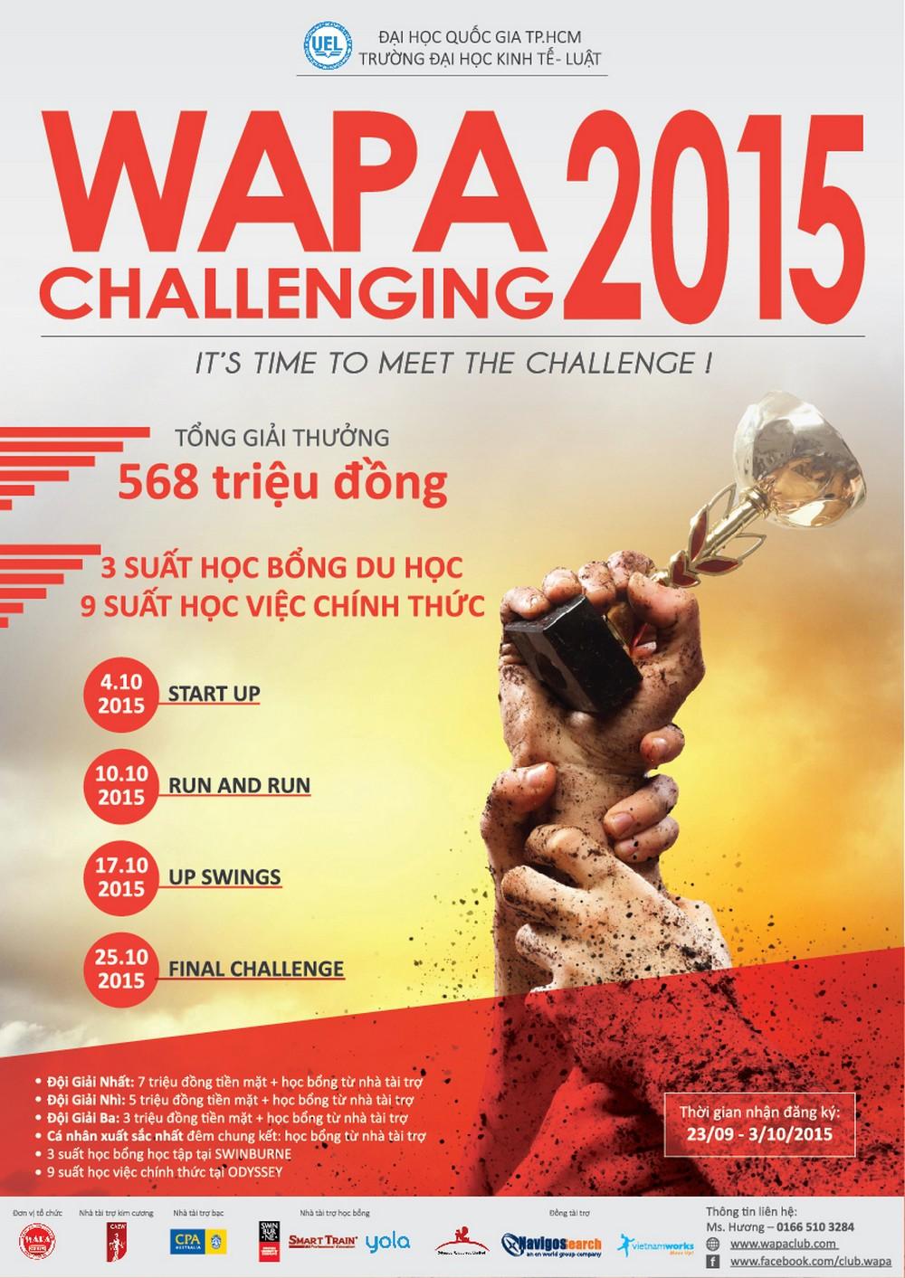 "WAPA Challenging" lần III - năm 2015 là một trong những sự kiện quan trọng thiết thực chào mừng kỷ niệm 15 năm Ngày truyền thống Trường Đại học Kinh tế - Luật (06/11/2000 - 06/112015). Cuộc thi là sân chơi thường niên quy mô cấp thành phố với sự đổi mới và hoàn thiện trong khâu tổ chức, truyền thông, chú trọng hơn về chất lượng chuyên môn, năng lực chuyên môn và kỹ năng ngoại ngữ của thí sinh
