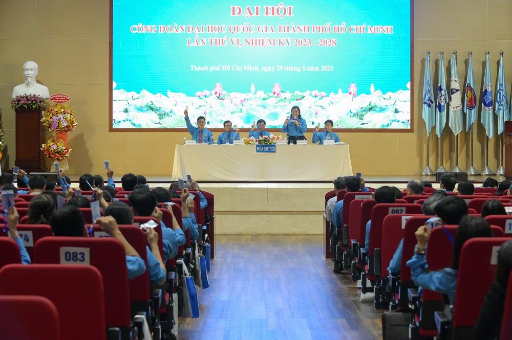 Đại hội đã thông qua báo cáo tóm tắt tổng kết hoạt động Công đoàn ĐHQG-HCM nhiệm kỳ 2018-2023 và phương hướng, nhiệm vụ nhiệm kỳ 2023-2028; bầu ra 14 thành viên ban chấp hành nhiệm kỳ mới, 6 đại biểu dự Đại hội Công đoàn Thành phố lần XII.