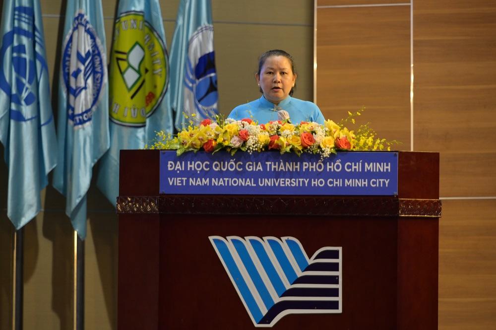 Phát biểu tại đại hội, bà Lê Thị Kim Thúy, cho rằng trong nhiệm kỳ qua, mặc dù tình hình kinh tế - xã hội có nhiều biến động, nhất là sự ảnh hưởng của dịch bệnh COVID-19, Công đoàn ĐHQG-HCM đã duy trì được tình đoàn kết, gắn bó, trách nhiệm với công đoàn viên, người lao động, tổ chức hiệu quả các phong trào đổi mới sáng tạo, đặc biệt là có nhiều hoạt động chuyên môn tiêu biểu, góp phần xây dựng và phát triển ngành giáo dục cả nước.