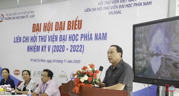 Đại diện nhà trường phát biểu tại Đại hội, PGS.TS Lê Vũ Nam cho rằng Đại hội là dịp để kết hợp tổ chức để trao đổi, thảo luận về những vấn đề quan trọng trong hoạt động thư viện như: quản lý hoạt động thư viện; tăng cường và chia sẻ tài nguyên nguồn học liệu; giúp đỡ nhau cùng phát triển, hướng đến xây dựng thư viện thông minh phục vụ một cách tôt nhất cho sự nghiệp giáo dục và đào tạo. PGS.TS Lê Vũ Nam cùng bày tỏ mong muốn Đại hội sẽ bầu ra Ban chấp hành nhiệm kỳ mới có thể để lãnh đạo Liên Chi hội Thư viện Đại học phía Nam ngày càng phát triển.
