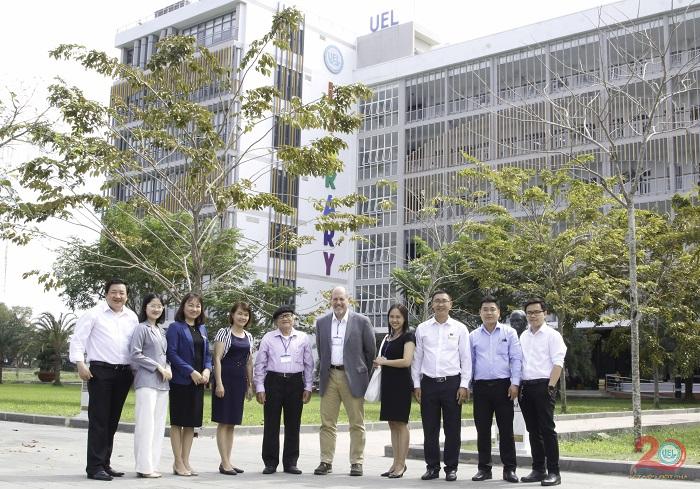 Các đại biểu và khách mời tham quan khuôn viên Trường Đại học Kinh tế - Luật