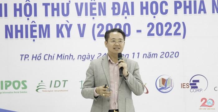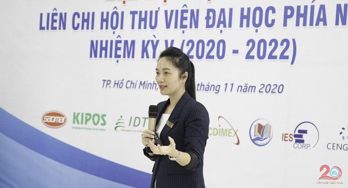 trình bày tham luận "Lãnh đạo Thư viện Trường Đại học và Cao đẳng trong điều kiện chuyển đổi".