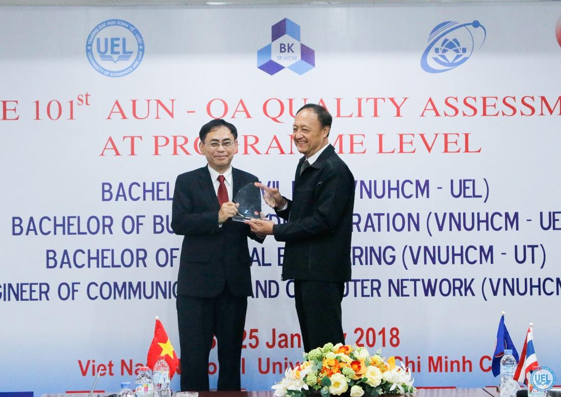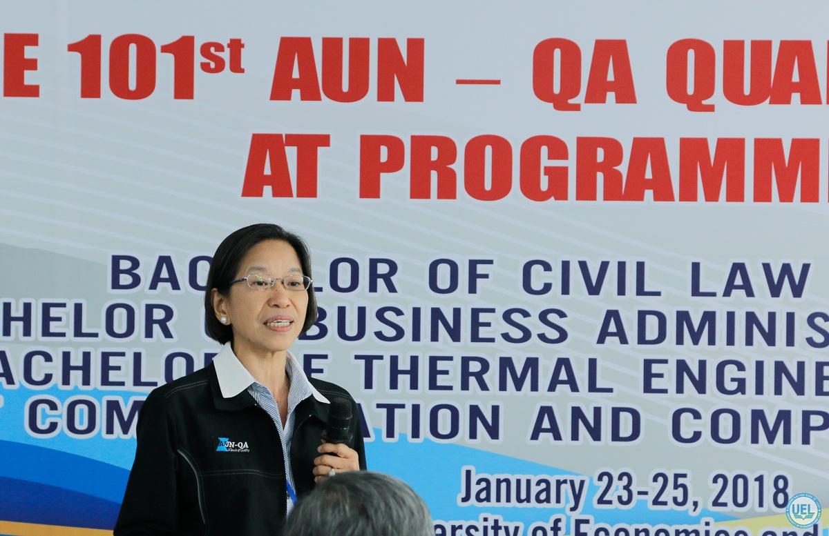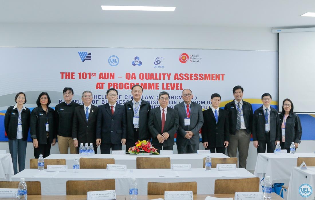 Các chuyên gia đánh giá của AUN-QA đến Trường Đại học Kinh tế - Luật bao gồm: GS.TS Chavalit Wongse-ek, TS Ariadne Lakshmidevi Juwono (đánh giá chương trình Quản trị kinh doanh); GS.TS Myrna S. Austria, TS Yu Un Oppusunggu (đánh giá chương trình Luật dân sự).