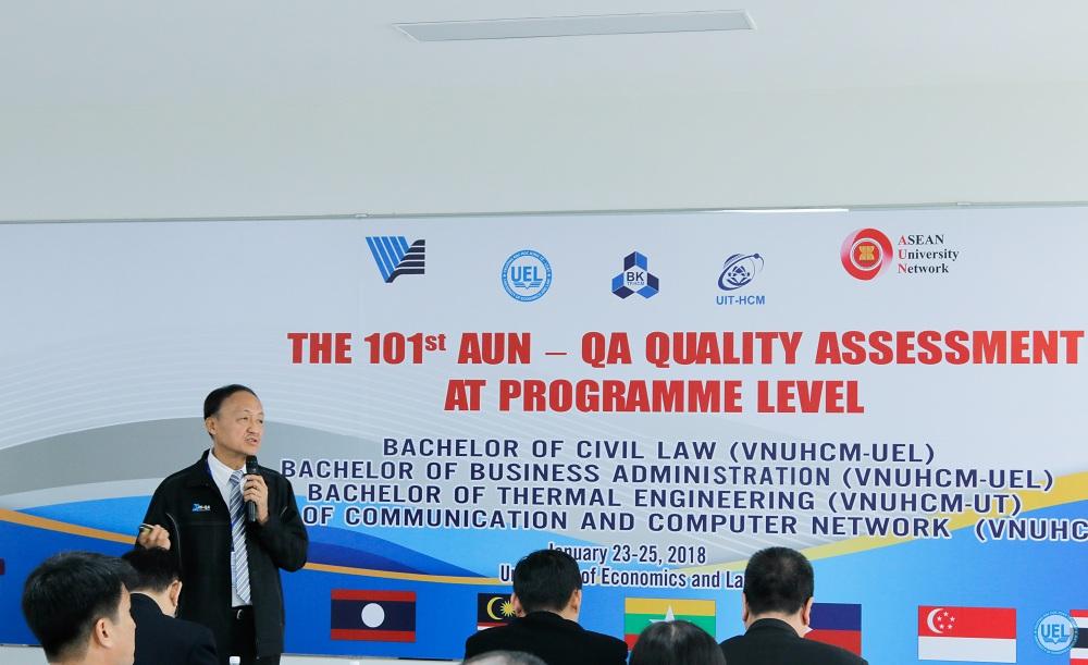 Từ ngày 23.01 - 25.01.2018, đoàn đánh giá ngoài gồm các chuyên gia của Mạng lưới các trường đại học Đông Nam Á đã đến Trường Đại học Kinh tế - Luật đánh giá chương trình Quản trị kinh doanh và Luật dân sự theo tiêu chuẩn AUN-QA.