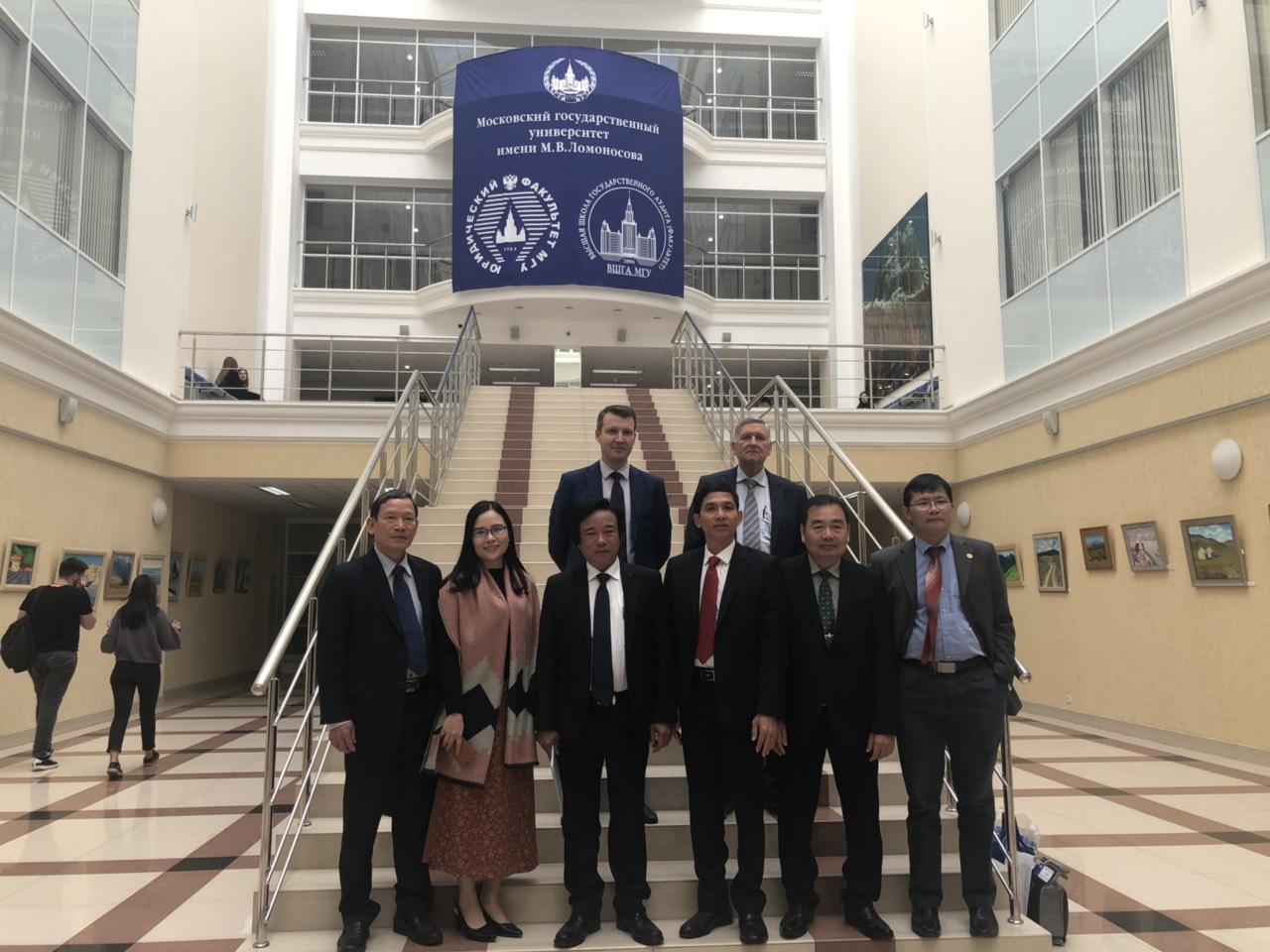 Đại diện đoàn của Trường Đại học Kinh tế - Luật gồm: PGS.TS Nguyễn Tiến Dũng, Hiệu trưởng; PGS.TS Nguyễn Văn Luân, Nguyên Hiệu trưởng; PGS.TS Hoàng Công Gia Khánh, Phó Hiệu trưởng; TS Huỳnh Thị Thuý Giang, Trưởng Khoa Kinh tế đối ngoại; PGS.TS Lê Vũ Nam, Trưởng Khoa Luật; PGS.TS Dương Anh Sơn, Trưởng Khoa Luật Kinh tế đã có buổi làm việc với Khoa Luật, Trường Đại học Tổng hợp Mátxcơva mang tên Lomonosov (MGU). Về phía Khoa Luật MGU có GS.TSKH Aleksandr K. Golichenkov, Trưởng Khoa Luật; GS.TS Andrei M. Chetvertkov, Trưởng Phòng hợp tác quốc tế; GS.TS Kuchma Kichik, Trưởng Bộ phận nghiên cứu pháp luật quốc tế và mua sắm công.