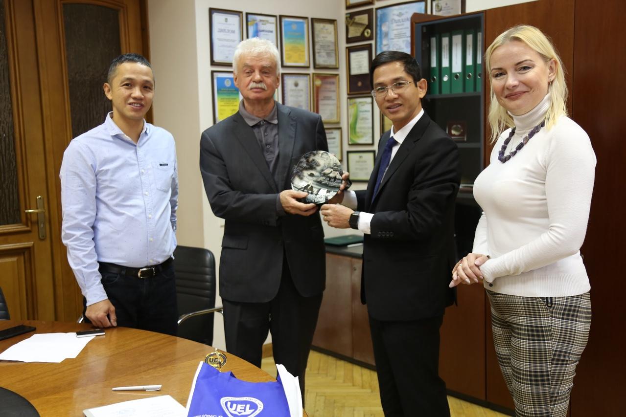 3. Ký kết Biên bản ghi nhớ hợp tác (MOU) với Trường Banking University - Ukraine: PGS.TS Hoàng Công Gia Khánh, Phó Hiệu trưởng đại diện Trường ĐH Kinh tế - Luật đã đến làm việc với GS.TS Oleksandr Baranovskyy - Phó Hiệu trưởng và GS.TS Nataliya Shvets - Giám đốc Viện Công nghệ ngân hàng và kinh doanh Banking University - Ukraine đồng thời ký kết biên bản ghi nhớ hợp tác giữa hai đơn vị.