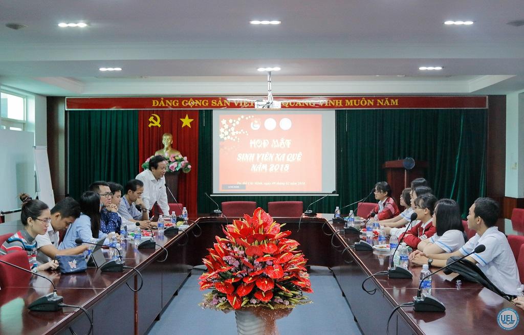 Sáng ngày 23/02/2019, tại phòng A.114, Trường Đại học Kinh tế - Luật (ĐHQG TP.HCM), Đoàn Thanh niên - Hội Sinh viên phối hợp cùng Phòng Công tác Sinh viên Trường Đại học Kinh tế - Luật tổ chức buổi họp mặt ấm cúng với các bạn sinh viên có hoàn cảnh khó khăn, không có điều kiện về quê đón Tết.