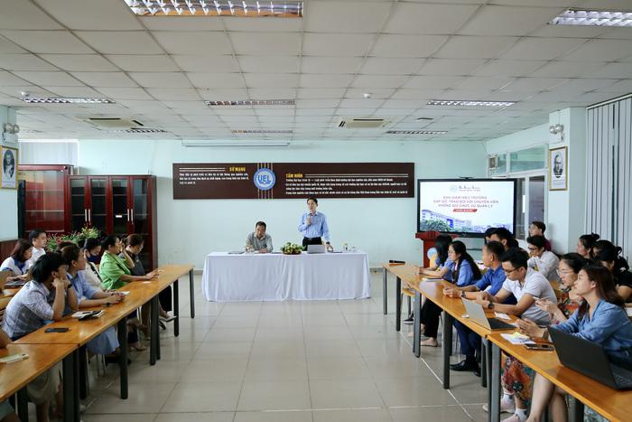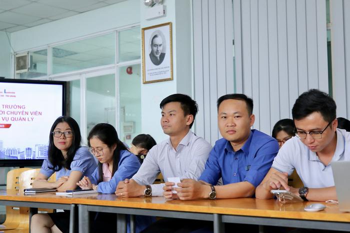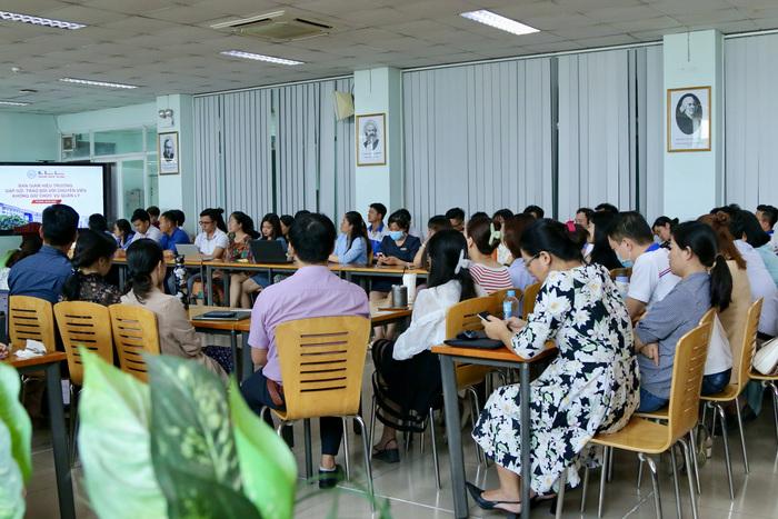 Buổi gặp gỡ, trao đổi có sự tham dự của PGS.TS Hoàng Công Gia Khánh - Hiệu trưởng; PGS.TS Lê Vũ Nam - Phó hiệu trưởng cùng hơn 80 chuyên viên từ các đơn vị thuộc và trực thuộc Trường.