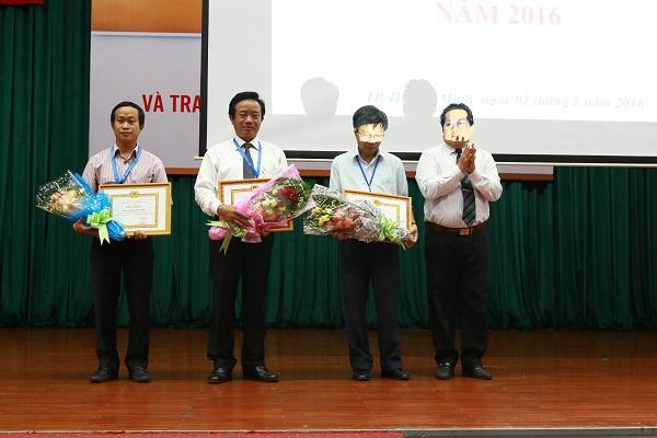 Thay mặt Đảng ủy ĐHQG HCM, Đ/c Nguyễn Văn Trừng trao bằng khen cho 3 cá nhân đạt thành tích 5 năm hoàn thành xuất sắc nhiệm vụ Đảng viên, bao gồm Đ/c Nguyễn Tiến Dũng, Đ/c Nguyễn Chí Hải và Đ/c Hoàng Ngọc Hiếu.