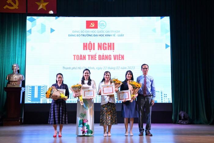 Tại hội nghị, Đảng ủy Trường cũng đã khen thưởng 04 chi bộ "Hoàn thành xuất sắc nhiệm vụ" và 42 cá nhân đạt danh hiệu "Hoàn thành xuất sắc nhiệm vụ" năm 2022 nhằm ghi nhận những cố gắng và đóng góp của các cá nhân, tập thể trong việc hoàn thành mục tiêu chung của toàn đảng bộ.