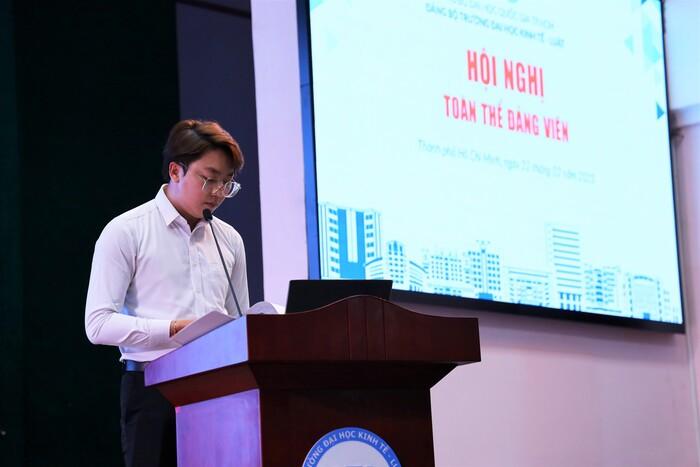 Ngày 22/02/2023, tại Trường Đại học Kinh tế - Luật đã diễn ra Hội nghị toàn thể Đảng viên năm 2023. Hội nghị nhằm báo cáo kết quả thực hiện hoạt động năm 2022 và đánh giá giữa nhiệm kỳ việc thực hiện nghị quyết đại hội Đảng bộ Trường Đại học Kinh tế - Luật lần thứ IV, nhiệm kỳ 2020-2025.