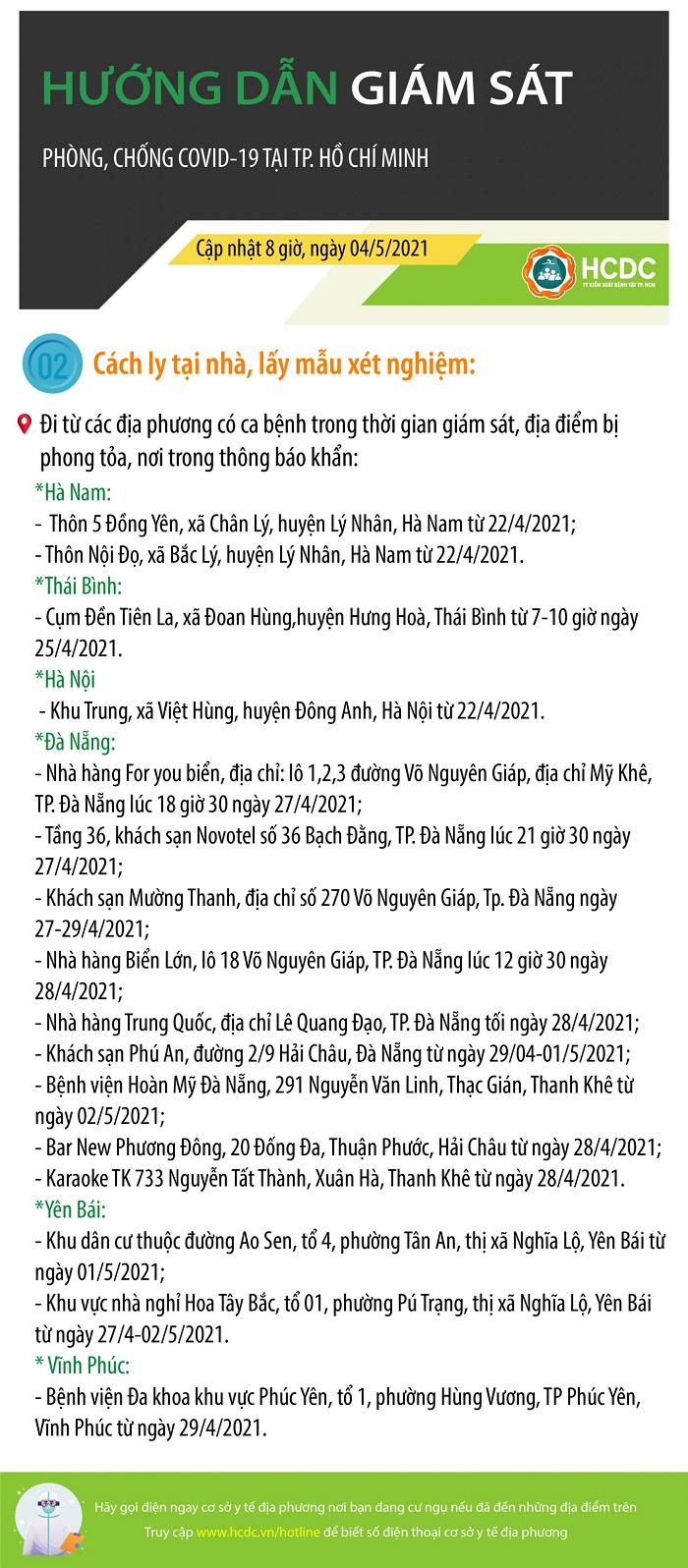 Trung tâm Kiểm soát Bệnh tật TP.HCM cập nhật thông tin về hướng dẫn giám sát phòng, chống dịch Covid-19 tại TP.HCM (cập nhật 8h00 phút, ngày 04/5/2021)