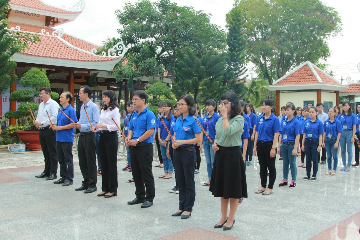 Quý đại biểu cùng các bạn sinh viên dâng hoa, thắp hương tưởng nhớ đến công lao của các anh hùng, liệt sĩ đã hy hy vì độc lập dân tộc.