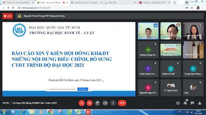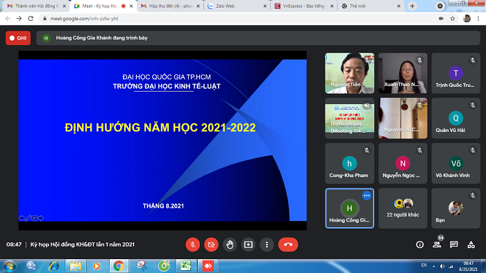 Sáng ngày 25/8/2021, Hội đồng Khoa học và Đào tạo Trường Đại học Kinh tế - Luật đã diễn ra kỳ họp lần thứ 5, nhiệm kỳ III (2017-2022).
