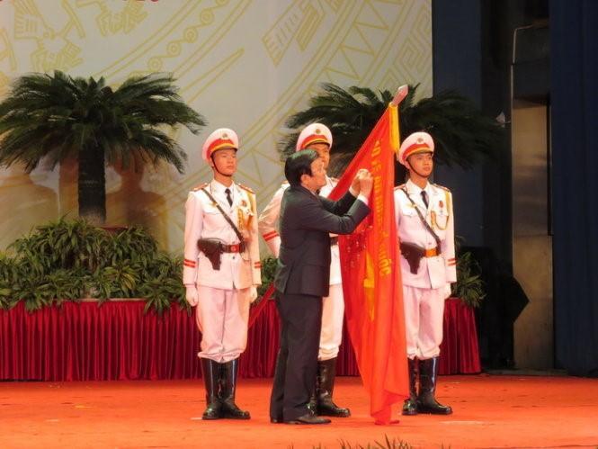 Chủ tịch nước Trương Tấn Sang gắn Huân chương Sao Vàng cho lực lượng Công an nhân dân vào tháng 8/2015