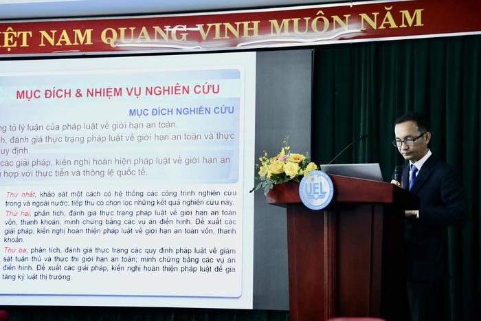 Đề tài luận án của NCS Mai Hoàng Đức Duy là: "Pháp luật về giới hạn an toàn trong hoạt động của ngân hàng thương mại tại Việt Nam" thuộc chuyên ngành Luật Kinh tế với mã số chuyên ngành là: 62.38.01.07 được sự hướng dẫn khoa học độc lập của: PGS.TS Lê Vũ Nam