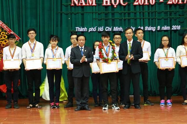 Sau bài diễn văn chào mừng năm học mới 2016-2017 của PGS.TS Nguyễn Tiến Dũng - Bí thư Đảng ủy, Hiệu trưởng Nhà trường là phần khen thưởng dành cho các tập thể và cá nhân có thành tích tiêu biểu trong năm học 2015-2016.