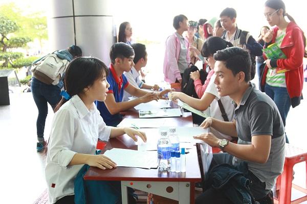 Sinh viên tình nguyện hỗ trợ tư vấn nhập học cho phụ huynh và tân sinh viên
