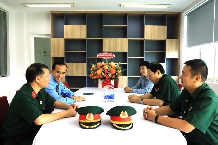 PGS.TS Lê Tuấn Lộc - Bí thư Đảng uỷ trò chuyện cùng hội viên Hội cựu chiến binh nhà trường.