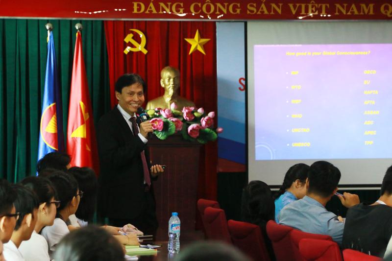 Giáo sư Gary Lit nói chuyện với giảng viên và sinh viên Đại học Kinh tế - Luật về toàn cầu hóa