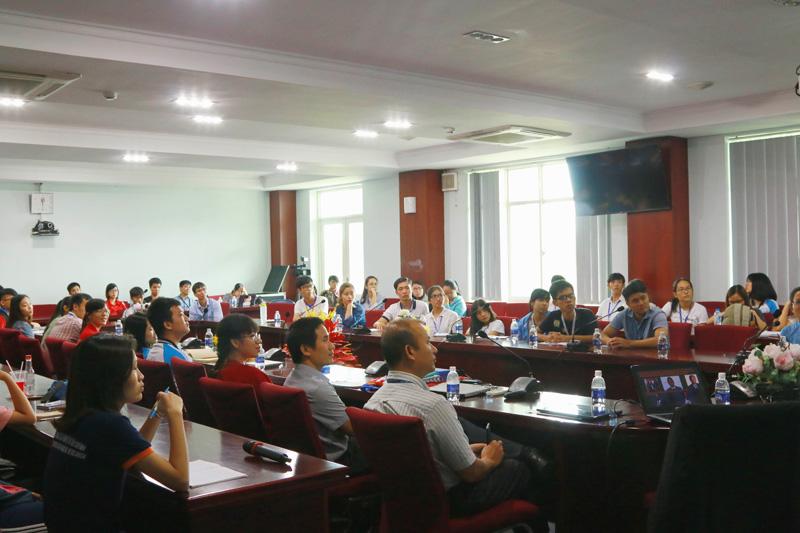 Cán bộ quản lý, giảng viên và sinh viên nhà trường chăm chú lắng nghe bài nói chuyện của GS. Gary Lit