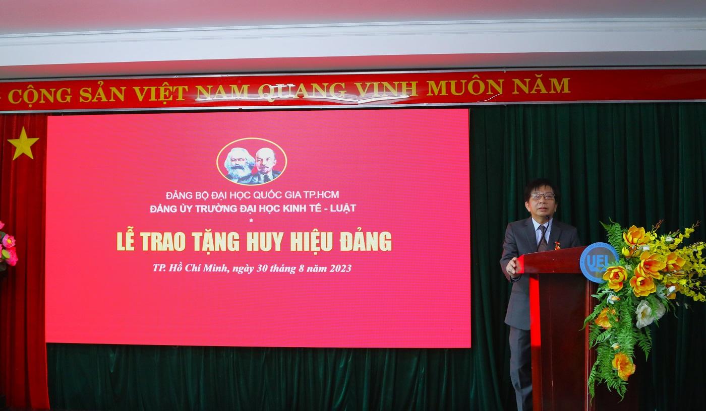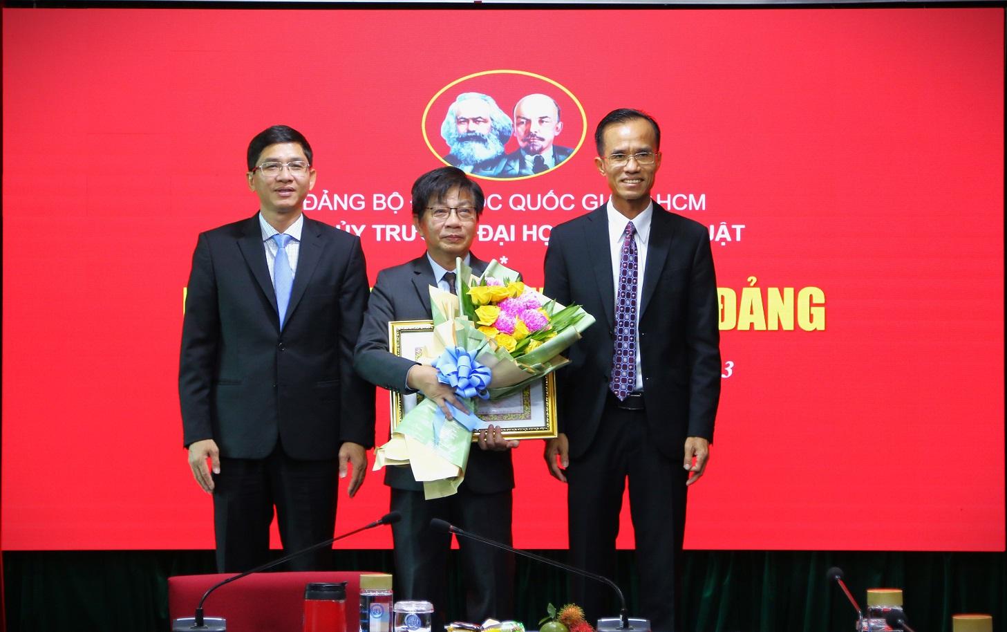 Tại Hội nghị, Đảng ủy Trường đã tổ chức Lễ trao huy hiệu 30 năm tuổi Đảng cho đồng chí Nguyễn Chí Hải - Nguyên Phó Bí thư Đảng uỷ, nguyên Trưởng Khoa Kinh tế. Đồng chí Nguyễn Chí Hải bày tỏ vinh dự khi nhận Huy hiệu 30 năm tuổi Đảng và cảm ơn Đảng bộ nhà trường đã luôn sát cánh, hỗ trợ hoàn thành tốt nhiệm vụ trong nhiều năm qua. Thay mặt Ban Thường vụ Đảng ủy, Đồng chí Lê Tuấn Lộc - Bí thư Đảng ủy, Chủ tịch Hội đồng Trường chúc mừng và ghi nhận chặng đường rèn luyện cũng như những đóng góp của đồng chí Nguyễn Chí Hải đối với sự phát triển của Trường Đại học Kinh tế - Luật. Đồng thời, mong muốn đồng chí tiếp tục phát huy vai trò của người đảng viên trong mọi cương vị công tác của mình để hoàn thành tốt công việc được giao, tiếp tục đóng góp vào sự phát triển của Khoa Kinh tế và Trường Đại học KInh tế - Luật.