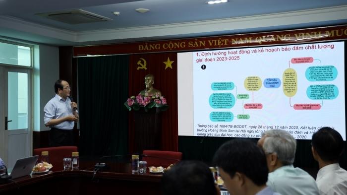 Trong chương trình hội nghị, ThS Hoàng Thọ Phú - Trưởng phòng Bảo đảm chất lượng đã báo cáo một số công tác đảm bảo chất lượng tại Trường. Trong đó, định hướng hoạt động và kế hoạch công việc bảo đảm chất lượng trong năm 2023 và trong giai đoạn 2023-2025 cùng với đó là trình bày kế hoạch công việc trọng tâm trong 4 tháng cuối năm 2022 của đơn vị.