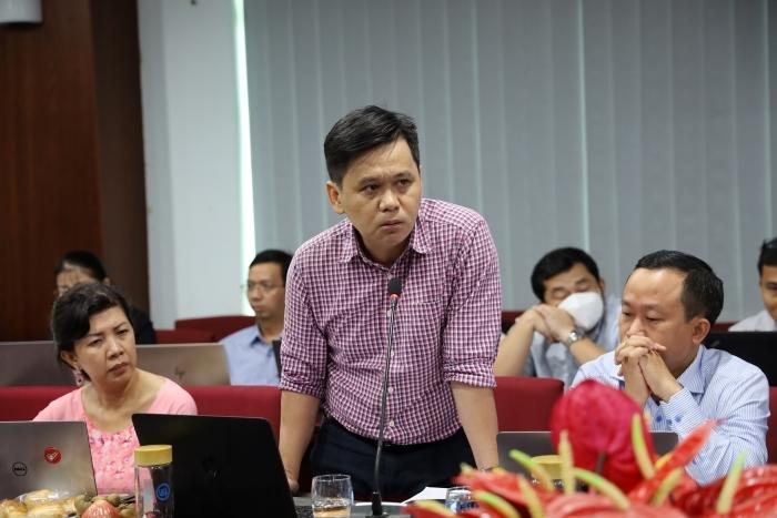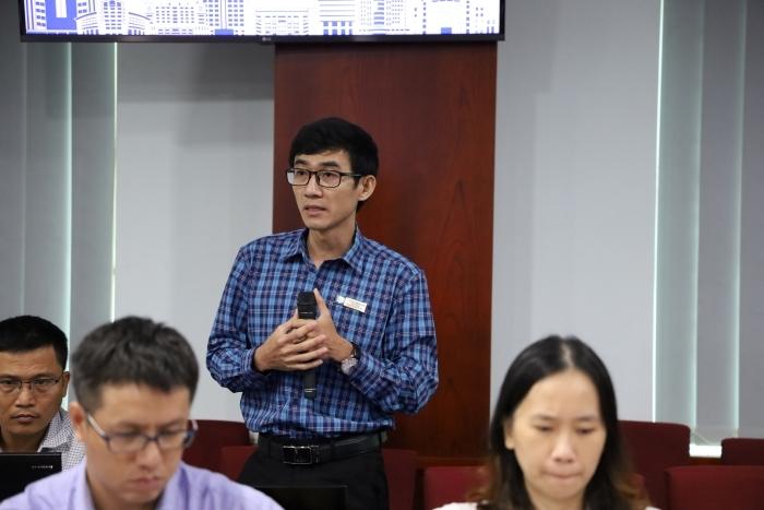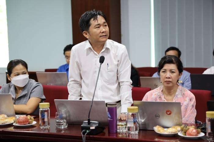 ThS Ngô Lê Mạnh Hiếu báo cáo về tình hình kiện toàn bộ máy và đào tạo bôi dưỡng nội bộ