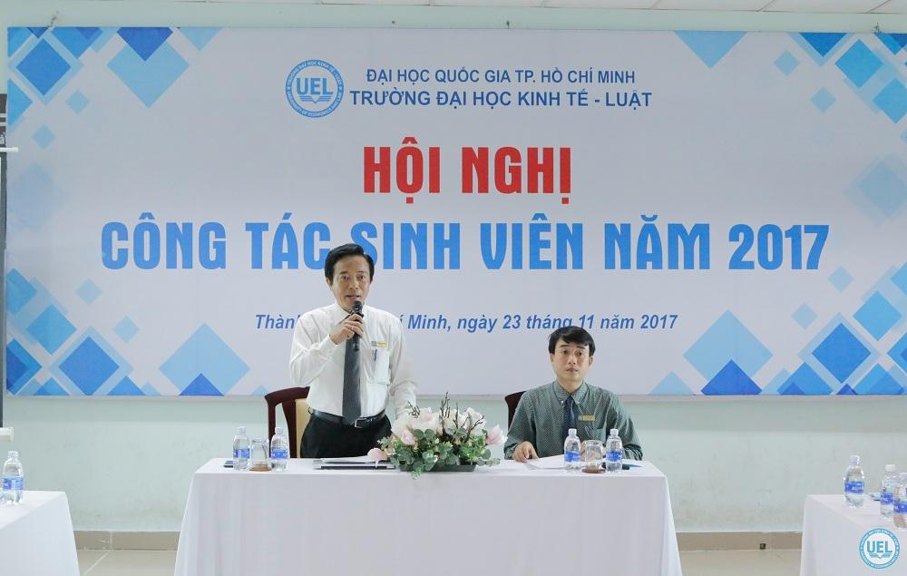 Ngày 23.11.2017, Trường Đại học Kinh tế - Luật đã tổ chức Hội nghị công tác sinh viên năm 2017 với sư tham dự của Ban Giám hiệu, đại diện các đơn vị trong trường và đại diện sinh viên các lớp, sinh viên quốc tế, sinh viên chương trình liên kết.