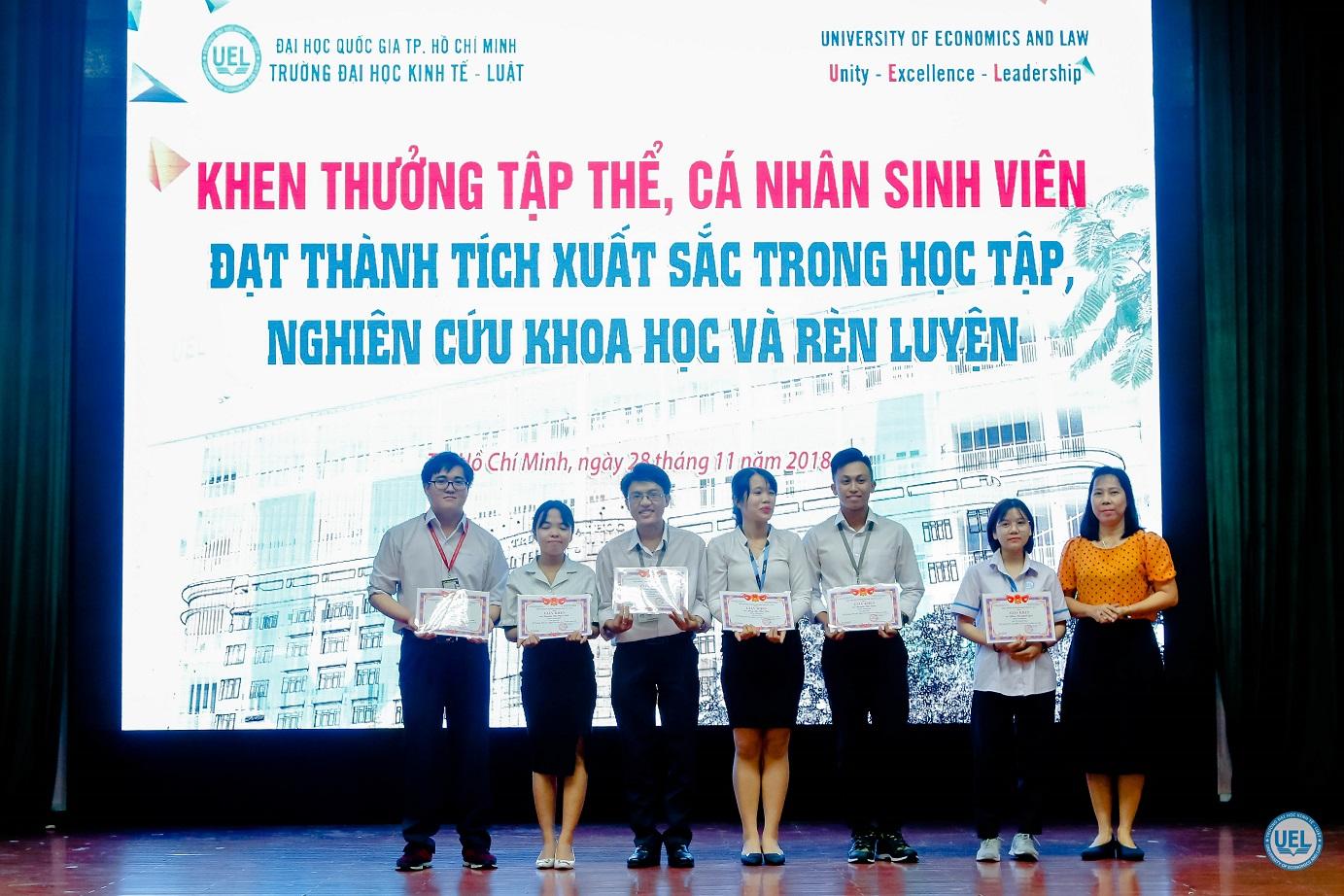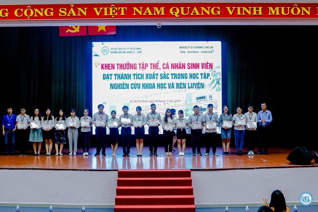 Tại Hội nghị, nhà trường đã khen thưởng các nhóm sinh viên đạt thành tích cao về nghiên cứu khoa học cấp Thành, cấp Trường; các đội, nhóm sinh viên đạt giải trong các cuộc thi học thuật và có nhiều đóng góp cho hoạt động sinh viên Trường; tập thể lớp sinh viên xuất sắc, lớp sinh viên tiên tiến năm năm học 2017-2018 và các sinh viên đạt danh hiệu Sinh viên xuất sắc năm học 2017-2018. Đồng thời, nhà trường cũng trao học bổng Đồng hành vượt khó lần 1, năm học 2018-2019 cho 31 sinh viên tiêu biểu.