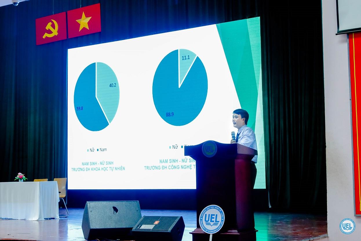 ThS Võ Văn Trọng - Trưởng phòng Công tác sinh viên báo cáo tổng quan số liệu công tác sinh viên,