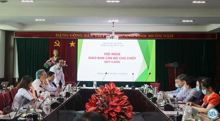 Ngày 7.5.2020, Trường Đại học Kinh tế - Luật đã tổ chức Hội nghị Giao ban cán bộ chủ chốt Quý II năm 2020 nhằm tổng kết lại những kết quả đã đạt được của Trường trong Quý I và đề ra hoạt động cho Quý II.