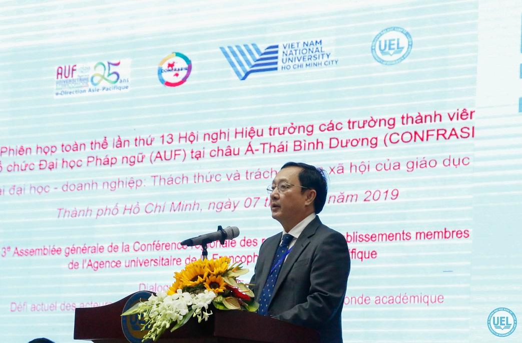 Phát biểu chào mừng hội nghị, PGS.TS Huỳnh Thành Đạt - Giám đốc ĐHQG TP.HCM cho biết ĐHQG TP.HCM luôn ủng hộ và tích cực trong việc thúc đẩy đối thoại giữa các thành viên của tổ chức Confrasie cũng như giữa các thành viên của tổ chức với các đối tác khác nhằm phục vụ mục tiêu phát triển giáo dục bền vững. PGS tin tưởng rằng Hội nghị lần này sẽ tạo cầu nối hiệu quả để thúc đẩy hợp tác giữa các trường thành viên ĐHQG TP.HCM với Confrasie và với các thành viên khác của tổ chức.