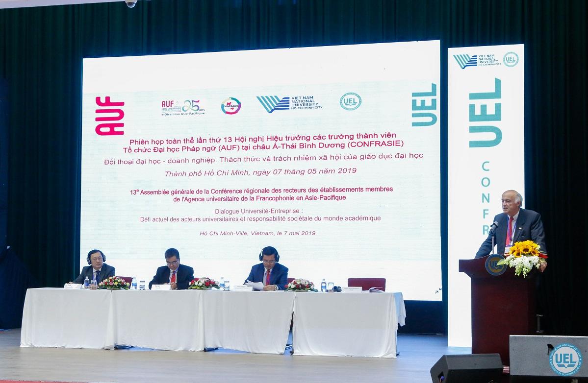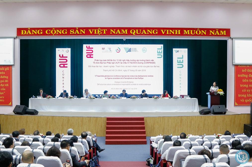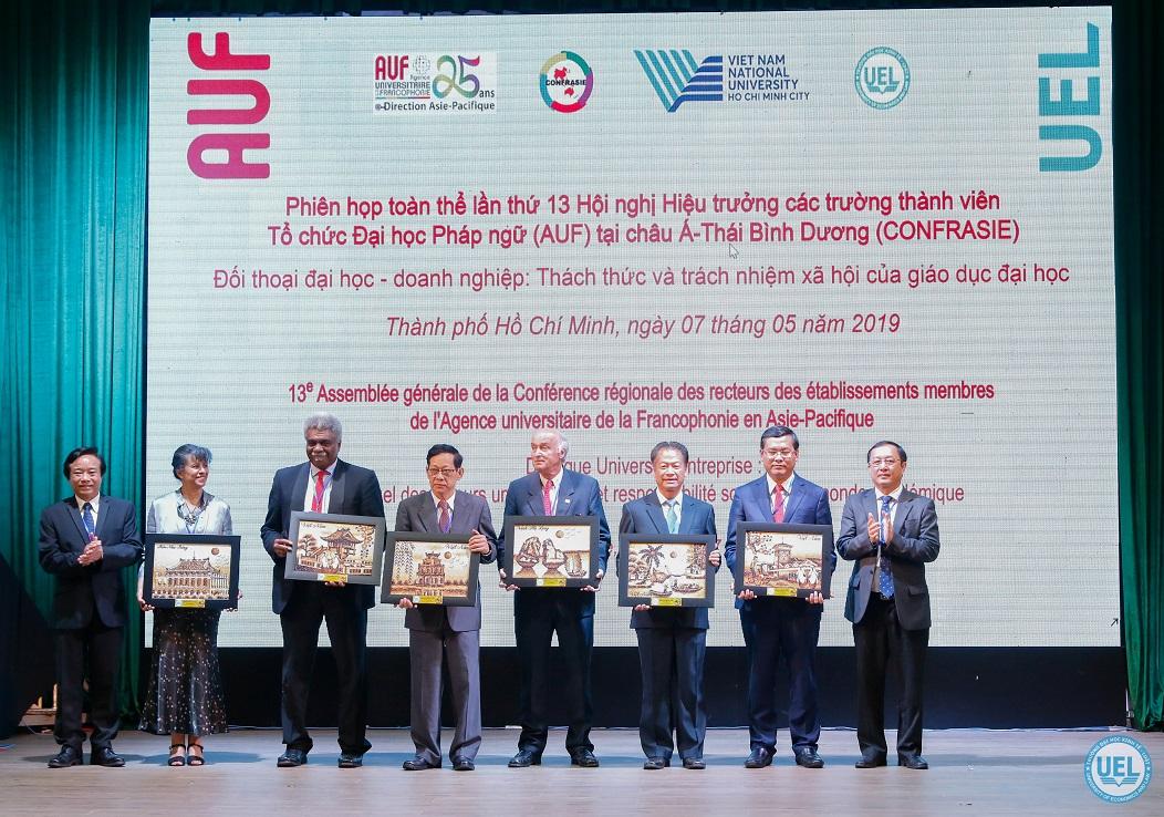 Ngày 07.5.2019, tại Trường Đại học Kinh tế - Luật, ĐHQG TP.HCM đã diễn ra Hội nghị hiệu trưởng các trường thành viên Tổ chức Đại học Pháp ngữ (AUF) khu vực châu Á - Thái Bình Dương (Confrasie) lần thứ 13 với sự tham gia của hơn 100 đại biểu thuộc 88 trường đại học, các tổ chức giáo dục và nghiên cứu thuộc 11 quốc gia. Đây này là một trong những diễn đàn lớn nhất khu vực về giáo dục đại học và nghiên cứu.