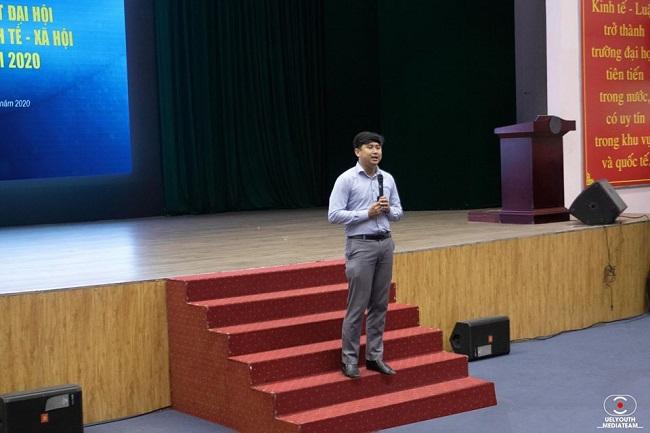 Ảnh: ThS. Ngô Lê Mạnh Hiếu - Đảng Ủy viên, Bí thư Đoàn trường báo cáo chuyên đề 1: Quán triệt nghị quyết Đại hội đại biểu Đoàn