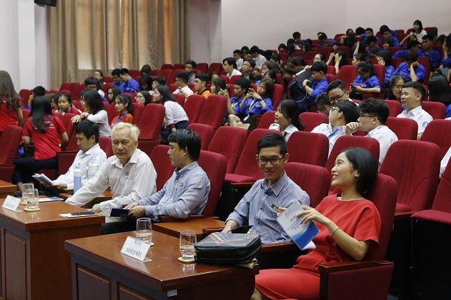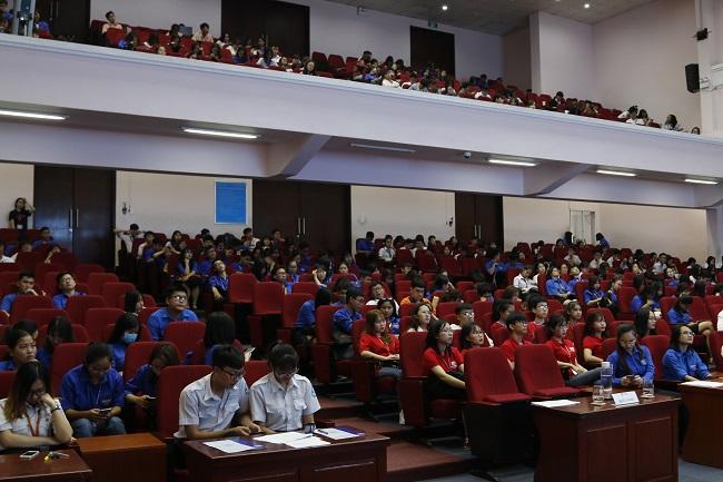 Hội nghị đón tiếp sự tham dự của đồng chí Trần Thu Hà - Ủy viên Ban thường vụ, Chánh văn phòng Thành Đoàn TP. HCM; đồng chí Phùng Thị Diệu Hương - Phó Bí thư Ban cán sự Đoàn; PGS.TS Nguyễn Tiến Dũng - Bí thư Đảng ủy, Hiệu trưởng nhà trường và hơn 400 cán bộ Đoàn - Hội đến tham dự.
