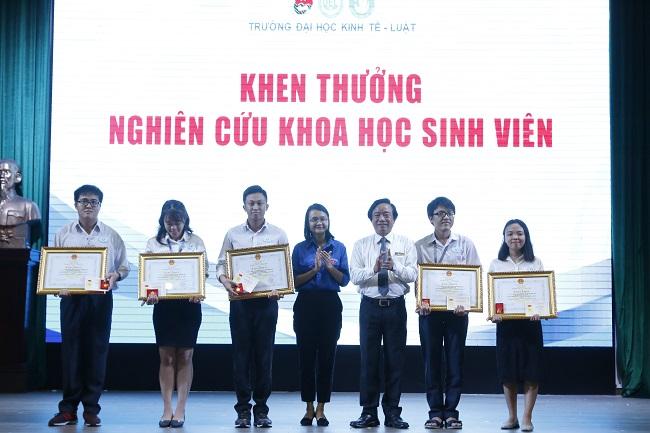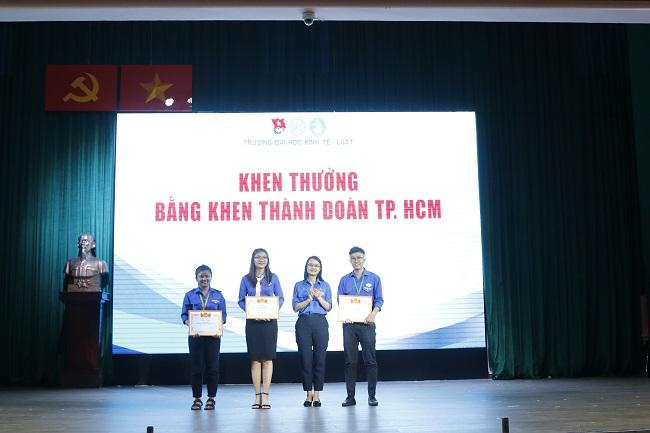 Bên cạnh đó Hội nghị đã tuyên dương 5 cá nhân nhận khen thưởng Nghiên cứu khoa học sinh viên cấp bộ, 3 cá nhân nhận khen thưởng Thành Đoàn TP.HCM, 17 tập thể nhận khen thưởng cấp Đoàn trường, 32 tập thể nhận khen thưởng cấp Hội sinh viên trường đã có những đóng góp tích cực cho năm hoạt động vừa qua 2018 - 2019.
