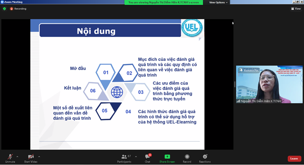 ThS Nguyễn Thị Diễm Hiền - Giảng viên Khoa TCNH trình bày tham luận "Sử dụng UEL E-learning trong hỗ trợ đánh giá quá trình học của sinh viên"
