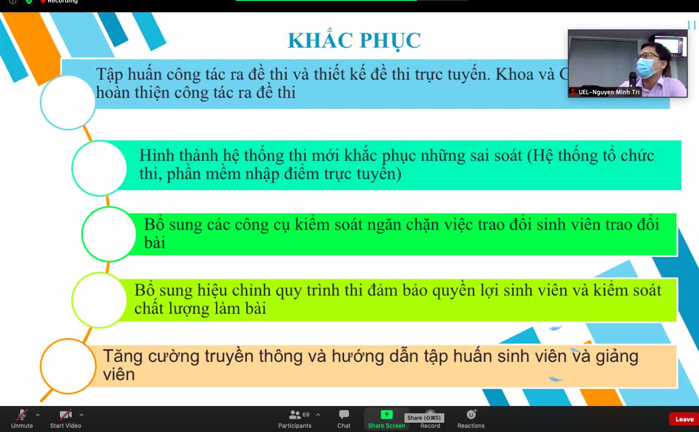 TS Nguyễn Vũ Phương - Trưởng P.KT&ĐBCL báo cáo Tổng kết công tác kiểm tra đánh giá môn học trực tuyến tại trường Đại học Kinh tế - Luật