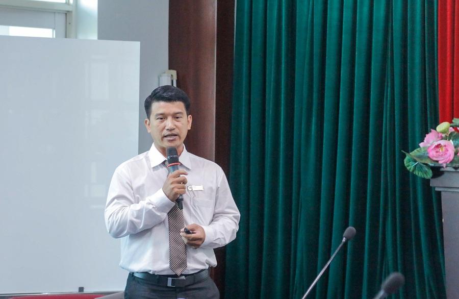 TS Phạm Huy Cường trình bày tham luận "Các yếu tố và giá trị cốt lõi trong việc giảng dạy tiếng Anh không chuyên ở các trường đại học trong bối cảnh hội nhập"